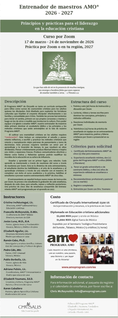 El currículo de AMO no tiene niveles. Los planes de lección basados en principios, están diseñados para lectores de todas las edades. Las guías proporcionan todo lo necesario para una enseñanza y un aprendizaje inspirados.